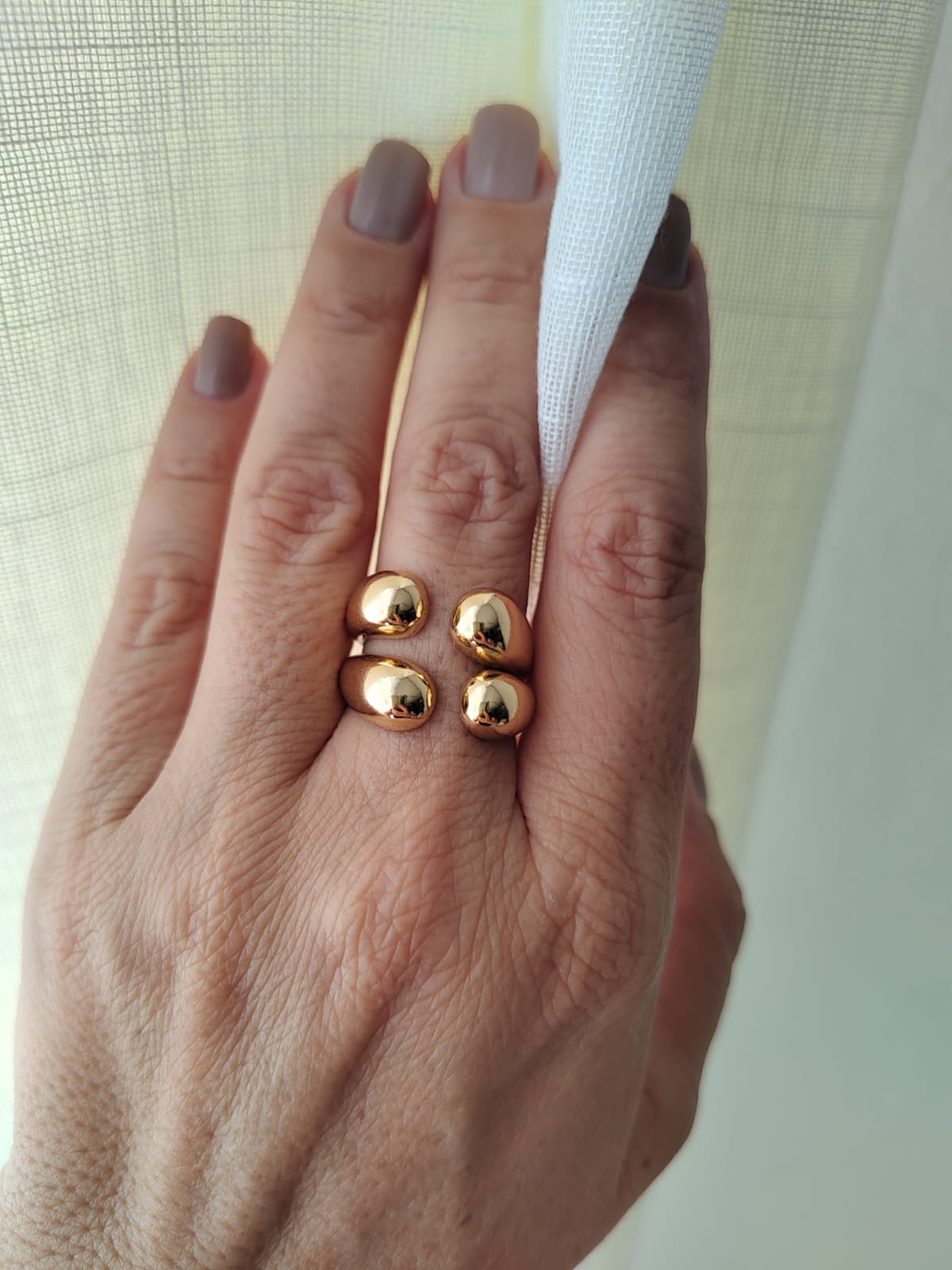 Anel tendência, designer ultra moderno com acabamento liso para te causar imagem de poder e autosuficiente, este anel quando combinado com o Brinco 3 Gotas Douradas, eleva o patamar da mulher brasileira as alturas do quesito elegância.