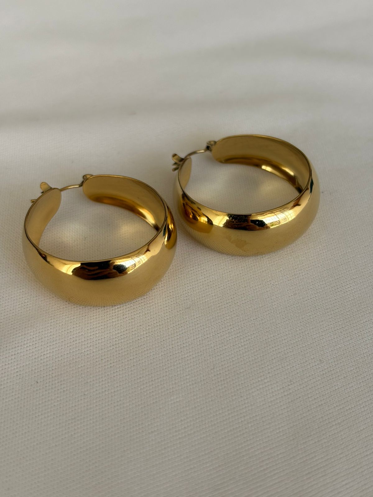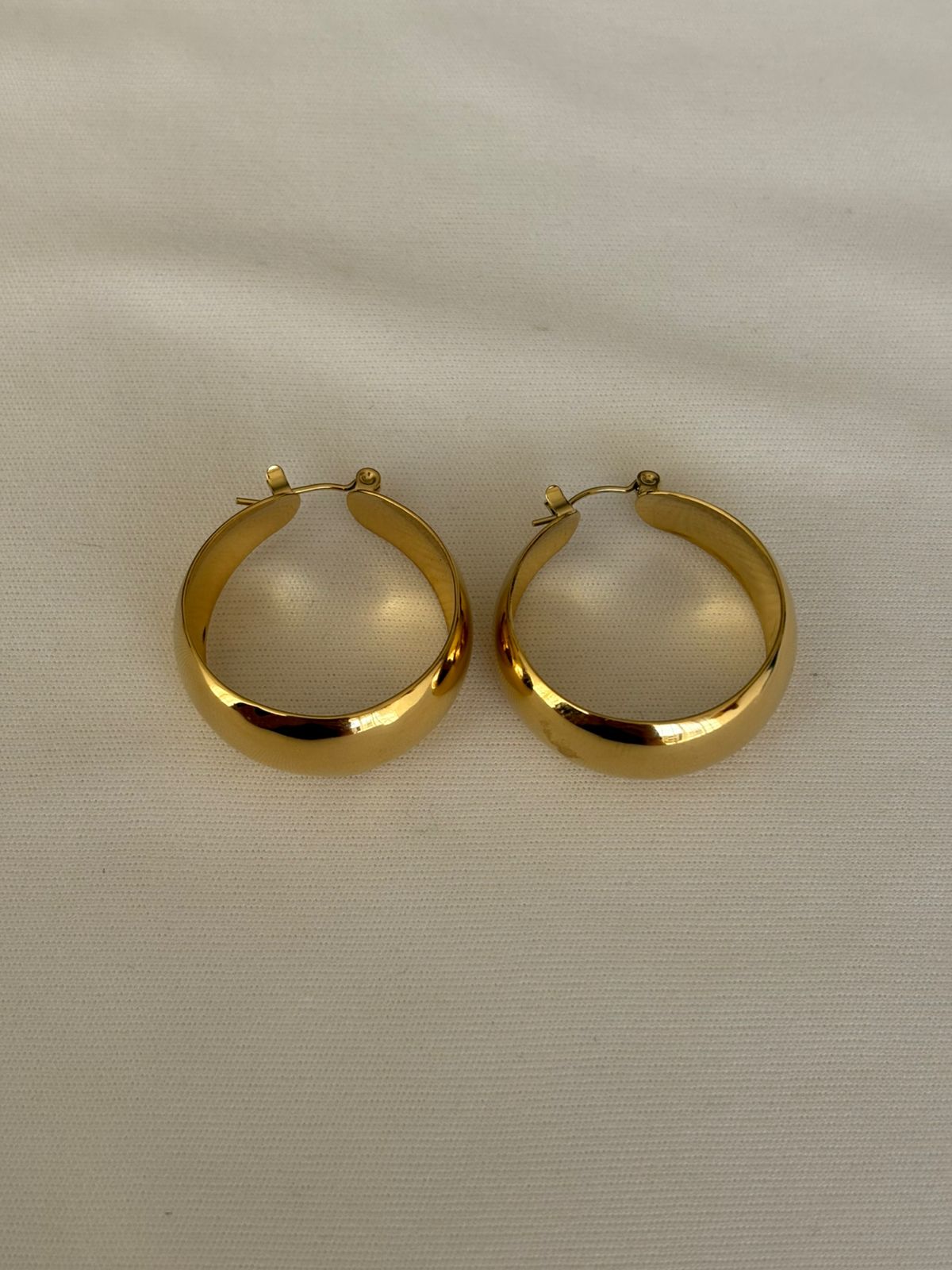 O acabamento é extremamente polido e reflete a luz como um espelho, proporcionando um brilho luxuoso e sofisticado. Ideal para quem busca um acessório que complementa tanto looks noturnos quanto eleva o estilo casual. As argolas “Bold” são essenciais para um visual moderno e ousado, mantendo a elegância atemporal do dourado.