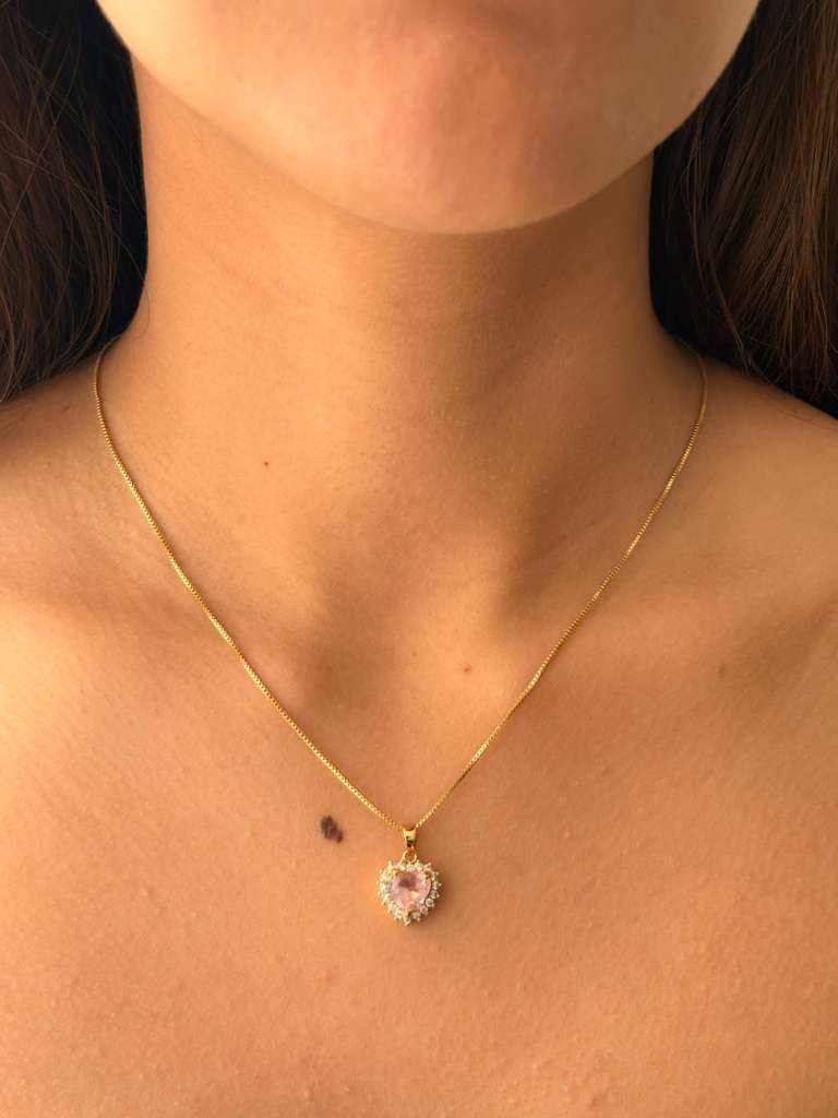 Este colar banhado a ouro exala sofisticação e delicadeza. A corrente veneziana, fina e elegante, destaca um pingente em formato de coração, cravejado com zircônias rosé que proporcionam um brilho suave e romântico sendo contornado por zircônias cristais. Uma peça perfeita para ocasiões especiais ou para adicionar um toque de charme ao visual cotidiano.